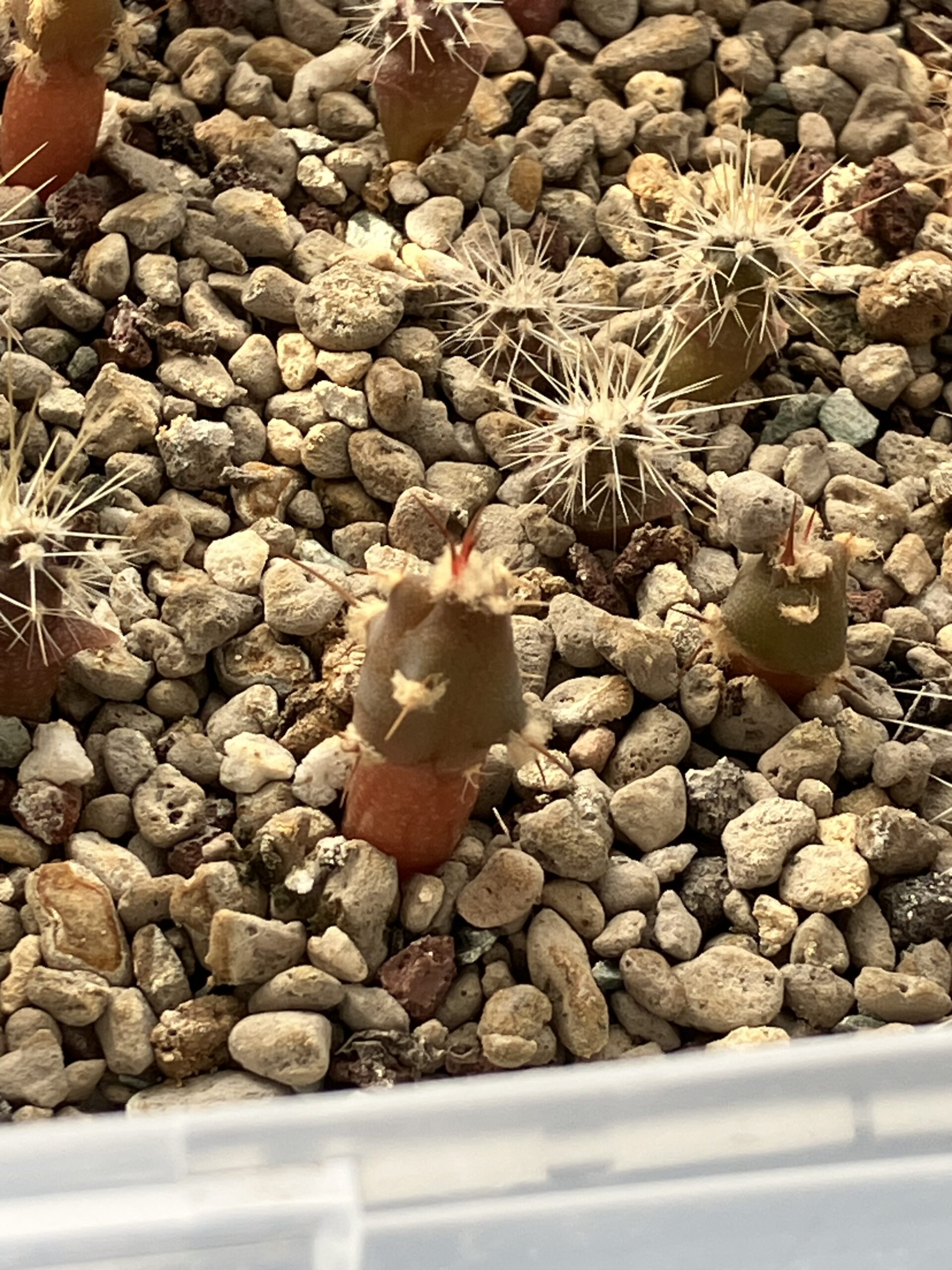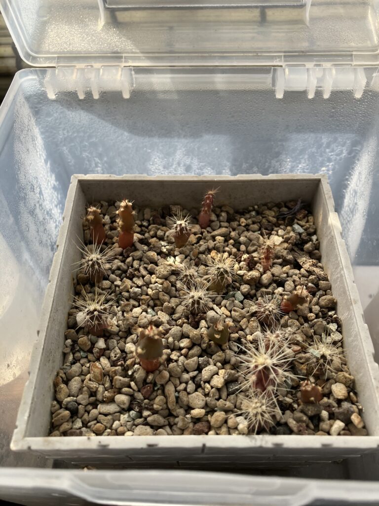 厳寒の信州ですが、窓辺に置いてあるCDケース温室内のサボテンは少しずつ育っています!